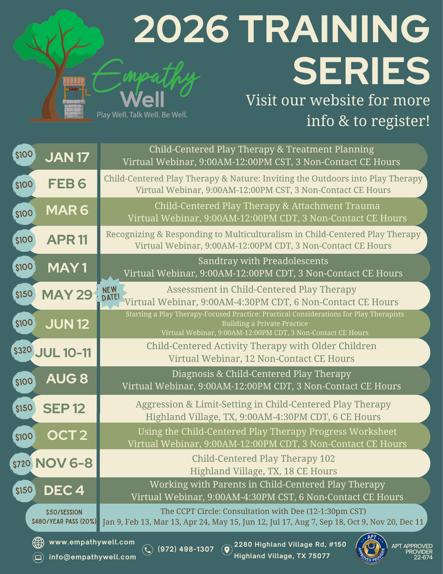 EmpathyWell is a proud Approved Provider of Play Therapy Continuing Education 22-674.